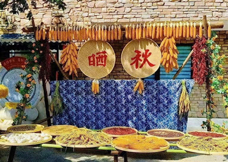 金黄的玉米、火红的辣椒、橙黄的南瓜铺满了整个广场,构成一幅喜庆的丰收画卷。“快来帮我拍一张!”25岁的王晓琳站在“晒秋”场景前招呼同伴。她特意穿了件红色外套,“这样拍出来更衬秋天的颜色。”